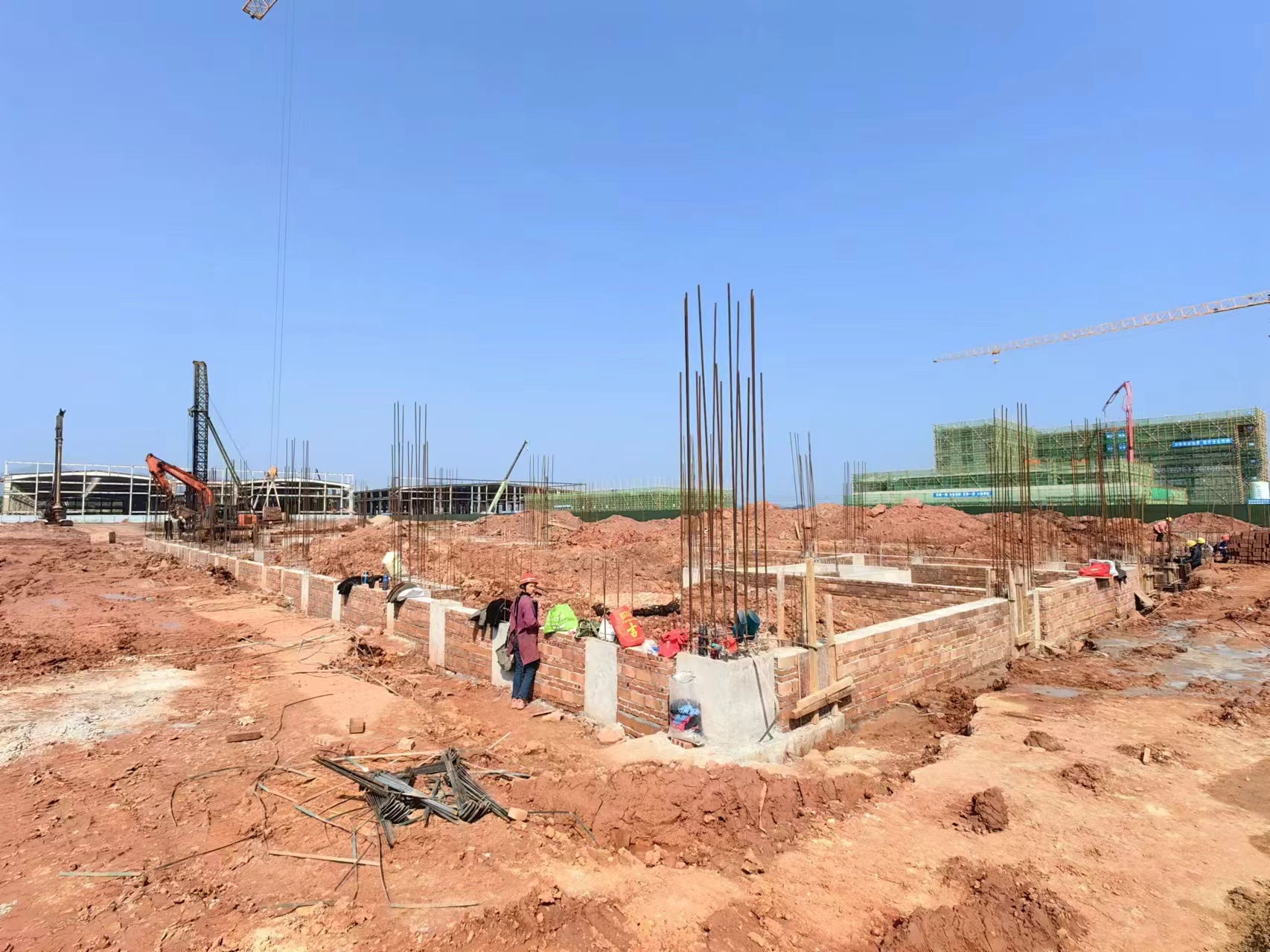 20号楼和21号楼基础砌体砌筑、地脚螺栓预埋完成;
