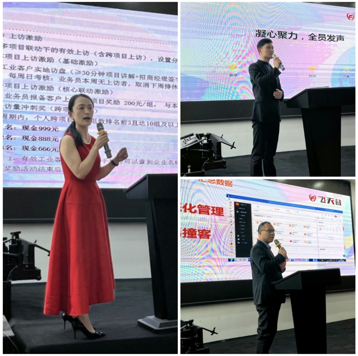 紧接着,各项目团队进行了风采展示。各团队依次登台,用铿锵有力的口号、整齐划一的队形,展现了飞天人昂扬向上的精神风貌。嘹亮的口号响彻会场,传递出必胜的信心与团队的力量。
